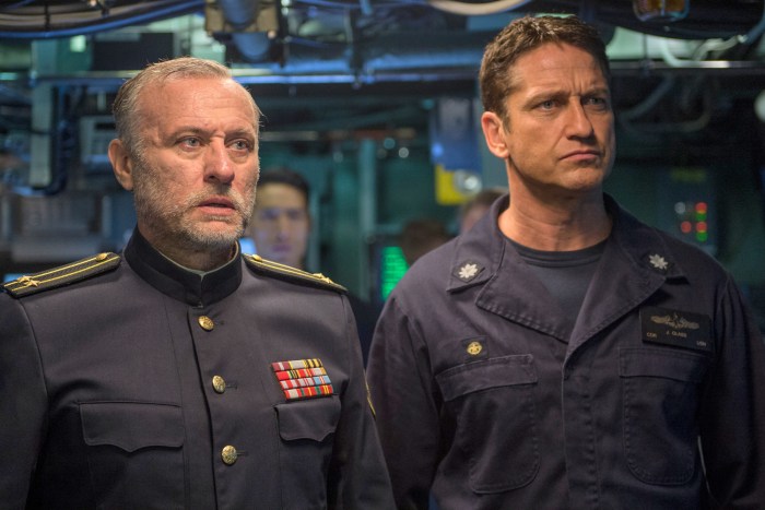 Butler stars as first time submarine captain, Joe Glass. You wouldn’t know that it’s his first time captaining a sub though, because he does absolutely everything right in order to prevent World War III from breaking out when the Russian Defense Minister, Admiral Durov (Michael Gor), kidnaps Russian President Zakarin (Alexander Diachenko), in order to stage a coup. Glass doesn’t know that’s what’s happening at first, nor does the Chairman of the Joint Chiefs (Gary Oldman) or Rear Admiral John Fisk (Common), who order Glass and his new sub to waters near Russia. Instead, they are out there looking for answers about what sunk another U.S. sub in the area and finding a sunk Russian one as well. The captain of that sub, Andropov (Michael Nyqvist), is still alive and rescued by Glass’s crew.