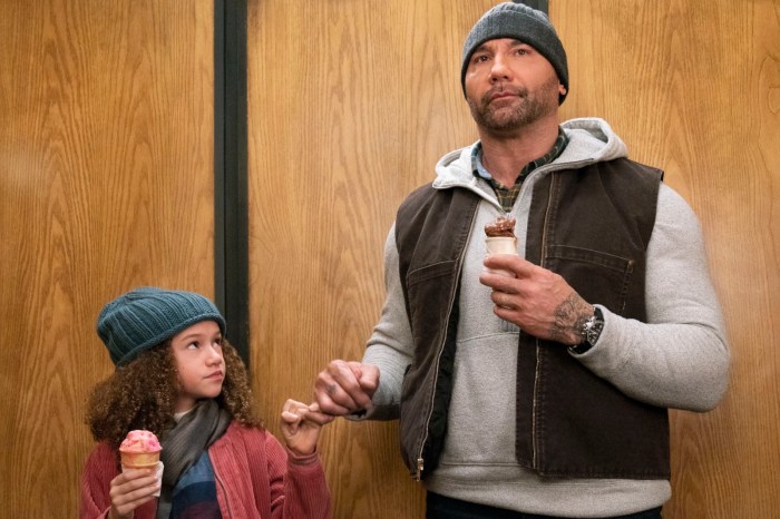 In the first few minutes of the new David Bautista film, “My Spy,” there are references to “Fifty Shades of Grey,” “Iron Man 2,” and “Notting Hill.” There are also a bunch of jokes based on diegetic needle drops (okay, it’s the same joke, but it’s done multiple times). As becomes clear, these are signs of a film that is trying too hard, that is pushing too much to generate laughs. This is a tendency from which director Peter Segal’s “My Spy” never fully overcomes, and that is regrettable – whenever the movie just lets things happen, just relies on the chemistry between Bautista and his young co-star, Chloe Coleman, it is a charming, enjoyable, entry into the “Big strong guy has to do movie with a cute kid” genre.