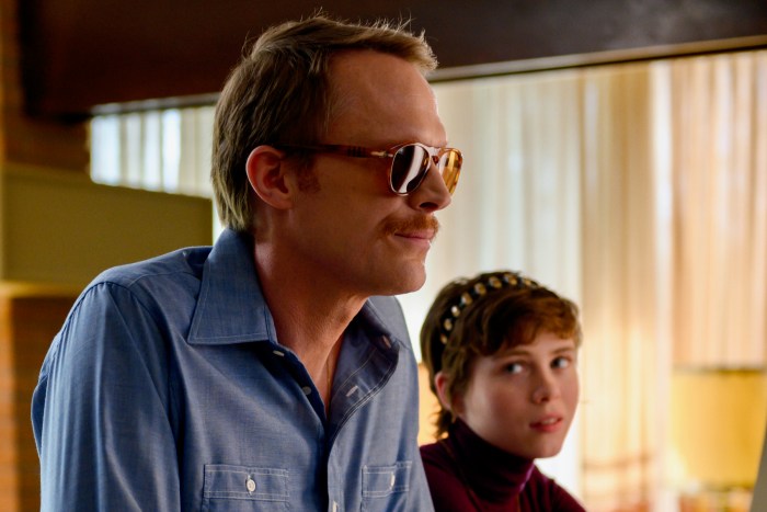 The movie, which largely takes place in 1973, is told from the point of view of Beth (Sophia Lillis), Frank’s niece. The family, save Frank (Paul Bettany), is a tight knit one living in South Carolina with Frank a professor at NYU. Frank is also gay, a secret divulged to Beth against his wishes when, as a freshman at the school, she crashes a party he’s having. Already a huge fan of his, Beth may be surprised by the news but soon accepts it and him. She also accepts Frank’s boyfriend, Wally (Peter Macdissi).